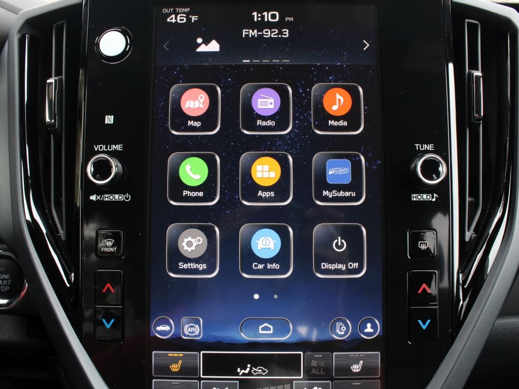 - Radio: Subaru 11.6" Multimedia Navigation System -inc: valet mode, integrated center information display, AM/FM stereo HD Radio, multi-touch gesture high resolution display screen, voice activated controls, voice activated navigation, Bluetooth® audio streaming and hands-free phone connectivity w/SMS text messaging connectivity (refer to subaru.com for cell phone compatibility), TomTom navigation software w/What3Words, iPod control capability, SiriusXM w/360L (4 months free trial/subscription required after), SiriusXM Travel Link (3 years free trial/subscription required after), SiriusXM Live Traffic (1 year free trial/subscription required after), smartphone integration for Android Auto and Apple CarPlay w/full screen view and wireless connection, USB and Over The Air (OTA) audio system update, TomTom navigation system update w/USB/Map Over The Air (MOTA) (3 years free map updates), steering wheel control switches for audio and Bluetooth®, harman/kardon speaker system w/11 speakers and 576 watt equivalent maximum output amplifier, 3.5mm auxiliary input jack and roof mounted audio and satellite antenna