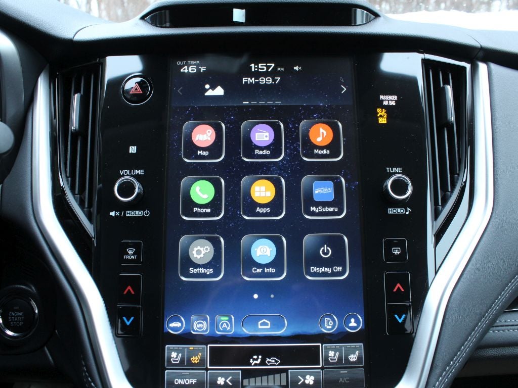 - Radio: Subaru 11.6" Multimedia System w/Navigation -inc: AM/FM stereo, HD Radio, valet mode, multi-touch gesture high resolution display screen, voice activated controls and navigation, Bluetooth® audio streaming and hands-free phone connectivity w/SMS text messaging (refer to subaru.com for cell phone compatibility), Near Field Communication (NFC), TomTom navigation software w/What3words, iPod control capability, SiriusXM w/360L (4 months free trial/subscription required after), SiriusXM Traffic (3 years free trial/subscription required after), SiriusXM Travel Link (3 years free trial/subscription required after), smartphone integration for Android Auto and Apple CarPlay w/full screen view and wireless connection, USB and Over The Air (OTA) audio system update, USB/Map Over The Air (MOTA) TomTom navigation system update (3 years free map updates), audio system and Bluetooth® steering wheel control switches, 576 watt harman/kardon surround sound system w/12 speakers, illuminated 3.5mm auxiliary input jack, illuminated USB-A and USB-C input/charge ports and rear center console CD player w/MP3/WMA/CRR/RW file capability