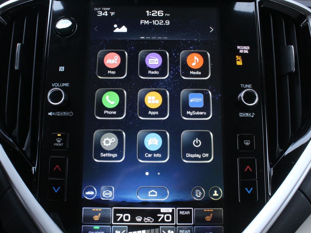 - Radio: Subaru 11.6" Multimedia System w/Navigation -inc: AM/FM stereo HD Radio, multi-touch gesture high resolution display screen, voice activated controls for radio and navigation, Bluetooth® audio streaming and hands-free phone connectivity w/SMS text messaging connectivity (refer to subaru.com for cell phone compatibility), TomTom navigation software w/what3words, iPod control capability, smartphone integration for Android Auto and Apple CarPlay w/full screen view and wireless connection, USB audio system update, audio system control switches, hands-free phone switches and voice command talk switch on steering wheel, harman/kardon quantum logic surround sound speaker system w/14 speakers, subwoofer and harman/kardon 792 watt equivalent maximum output amplifier, illuminated 3.5mm auxiliary input jack, illuminated USB A and C input/charge ports, SiriusXM w/360L (4 months free trial included/subscription required after) and SiriusXM Travel Link (4 months free trial included/subscription required after)