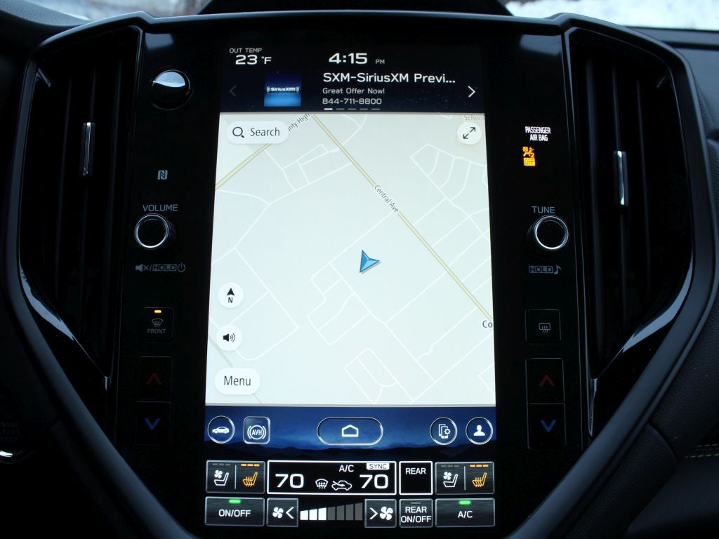 - Radio: Subaru 11.6" Multimedia System w/Navigation -inc: AM/FM stereo HD Radio, multi-touch gesture high resolution display screen, voice activated controls for radio and navigation, Bluetooth® audio streaming and hands-free phone connectivity w/SMS text messaging connectivity (refer to subaru.com for cell phone compatibility), TomTom navigation software w/what3words, iPod control capability, smartphone integration for Android Auto and Apple CarPlay w/full screen view and wireless connection, USB audio system update, audio system control switches, hands-free phone switches and voice command talk switch on steering wheel, harman/kardon quantum logic surround sound speaker system w/14 speakers, subwoofer and harman/kardon 792 watt equivalent maximum output amplifier, illuminated 3.5mm auxiliary input jack, illuminated USB A and C input/charge ports, SiriusXM w/360L (4 months free trial included/subscription required after) and SiriusXM Travel Link (4 months free trial included/subscription required after)