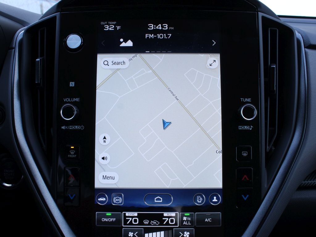 - Radio: Subaru 11.6" Multimedia Navigation System -inc: valet mode, AM/FM stereo, HD Radio, multi-touch gesture high resolution display screen, voice activated controls and navigation, Bluetooth® audio streaming and hands-free phone connectivity, Bluetooth® hands-free SMS text messaging connectivity, TomTom navigation software w/what3words, iPod control capability, smartphone integration: wired and wireless Android Auto w/full screen view and wireless Apple CarPlay w/full screen view, USB and Over The Air (OTA) audio system update, TomTom navigation system update: USB/map Over-the-Air (OTA) (3 years free map updates), steering wheel audio system and Bluetooth® control switches, harman kardon speaker system w/10 speakers (4 stacked dash panel side coaxial speakers, 2 front door speakers and 4 stacked subwoofer rear door coaxial speakers) and 432 watt equivalent maximum output amplifier, illuminated 3.5mm auxiliary input jack, illuminated front USB A and C input/charge ports, connected services operation indicator, SOS emergency assistance: red SOS button and enhanced roadside assistance: blue i-button
