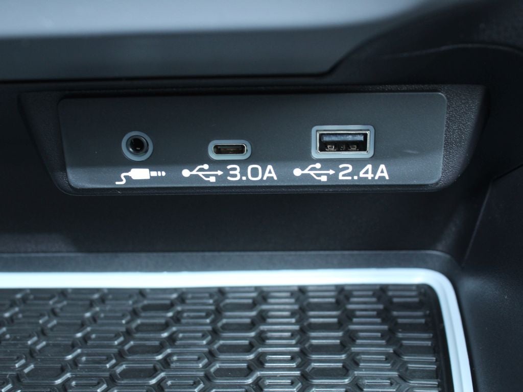 - Radio: Subaru 11.6" Multimedia Plus System -inc: AM/FM stereo, HD Radio, multi-touch gesture high resolution display screen, voice activated controls, Bluetooth® audio streaming and hands-free phone connectivity, Bluetooth® hands-free SMS text messaging connectivity, iPod control capability, smartphone integration: wired and wireless Android Auto w/full screen view and wireless Apple CarPlay w/full screen view, USB and Over The Air (OTA) audio system update, steering wheel audio system and Bluetooth® control switches, 6 speakers (2 dash panel tweeter, 2 front door and 2 rear door), illuminated 3.5mm auxiliary input jack, illuminated front USB A and C input/charge ports, connected services operation indicator, SOS emergency assistance: red SOS button and enhanced roadside assistance: blue i-button