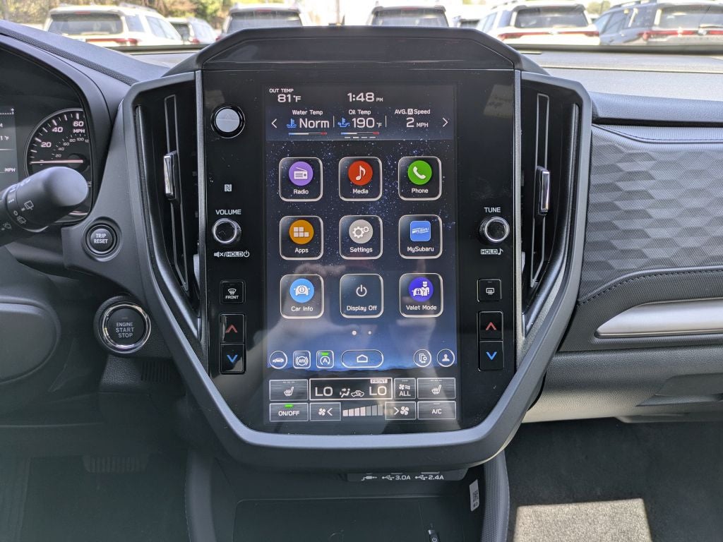 - Radio: Subaru 11.6" Multimedia Plus System -inc: valet mode, integrated center information display, AM/FM stereo HD Radio, multi-touch gesture high resolution display screen, voice activated controls, Bluetooth® audio streaming and hands-free phone connectivity w/SMS text messaging (refer to Subaru.com for cellphone compatibility), iPod control capability, smartphone integration: Android Auto and Apple CarPlay w/full screen view and wireless connection, SiriusXM satellite radio w/360L (free 4-month trial subscription included), USB and Over The Air (OTA) audio system update, steering wheel controls, 6 speakers, 3.5mm auxiliary input jack and roof mounted audio and satellite antenna