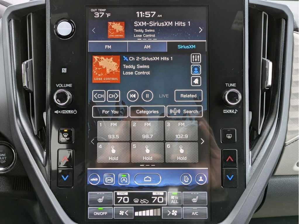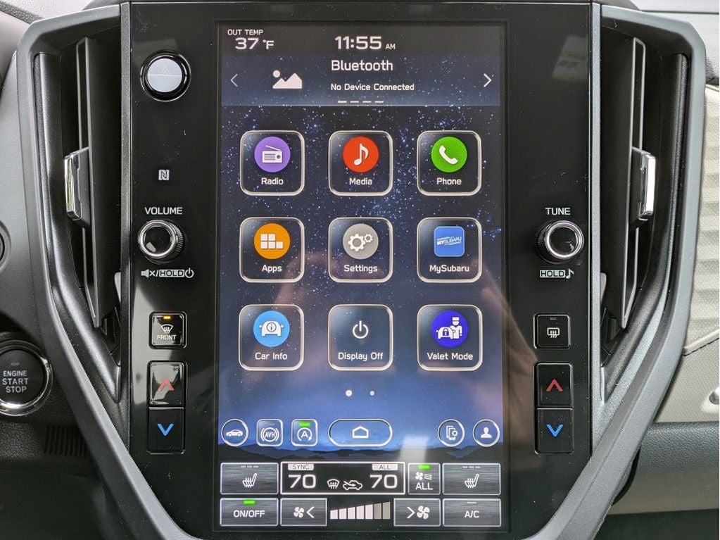 - Radio: Subaru 11.6" Multimedia Plus System -inc: valet mode, integrated center information display, AM/FM stereo HD Radio, multi-touch gesture high resolution display screen, voice activated controls, Bluetooth® audio streaming and hands-free phone connectivity w/SMS text messaging (refer to Subaru.com for cellphone compatibility), iPod control capability, smartphone integration: Android Auto and Apple CarPlay w/full screen view and wireless connection, SiriusXM satellite radio w/360L (free 4-month trial subscription included), USB and Over The Air (OTA) audio system update, steering wheel controls, 6 speakers, 3.5mm auxiliary input jack and roof mounted audio and satellite antenna