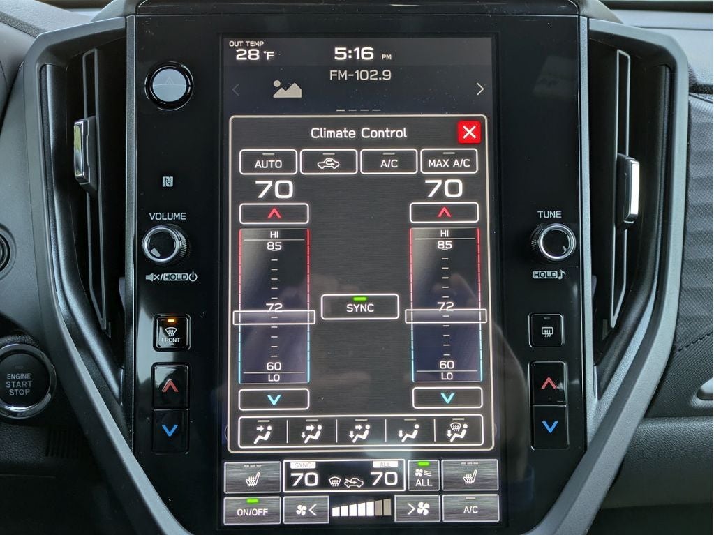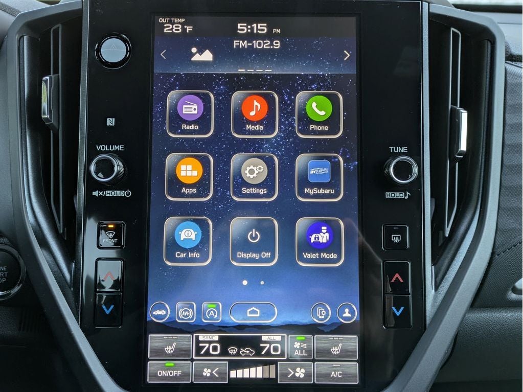 - Radio: Subaru 11.6" Multimedia Plus System -inc: valet mode, integrated center information display, AM/FM stereo HD Radio, multi-touch gesture high resolution display screen, voice activated controls, Bluetooth® audio streaming and hands-free phone connectivity w/SMS text messaging (refer to Subaru.com for cellphone compatibility), iPod control capability, smartphone integration: Android Auto and Apple CarPlay w/full screen view and wireless connection, SiriusXM satellite radio w/360L (free 4-month trial subscription included), USB and Over The Air (OTA) audio system update, steering wheel controls, 6 speakers, 3.5mm auxiliary input jack and roof mounted audio and satellite antenna