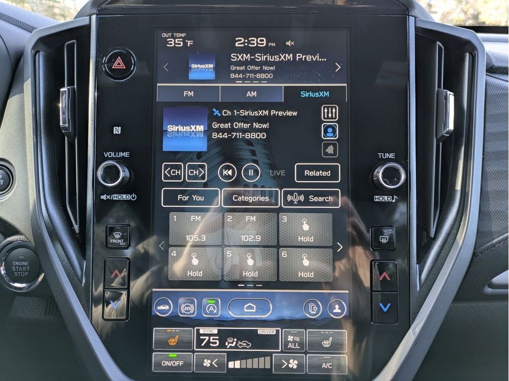 - Radio: Subaru 11.6" Multimedia Plus System -inc: valet mode, integrated center information display, AM/FM stereo HD Radio, multi-touch gesture high resolution display screen, voice activated controls, Bluetooth® audio streaming and hands-free phone connectivity w/SMS text messaging (refer to Subaru.com for cellphone compatibility), iPod control capability, smartphone integration: Android Auto and Apple CarPlay w/full screen view and wireless connection, SiriusXM satellite radio w/360L (free 4-month trial subscription included), USB and Over The Air (OTA) audio system update, steering wheel controls, 6 speakers, 3.5mm auxiliary input jack and roof mounted audio and satellite antenna