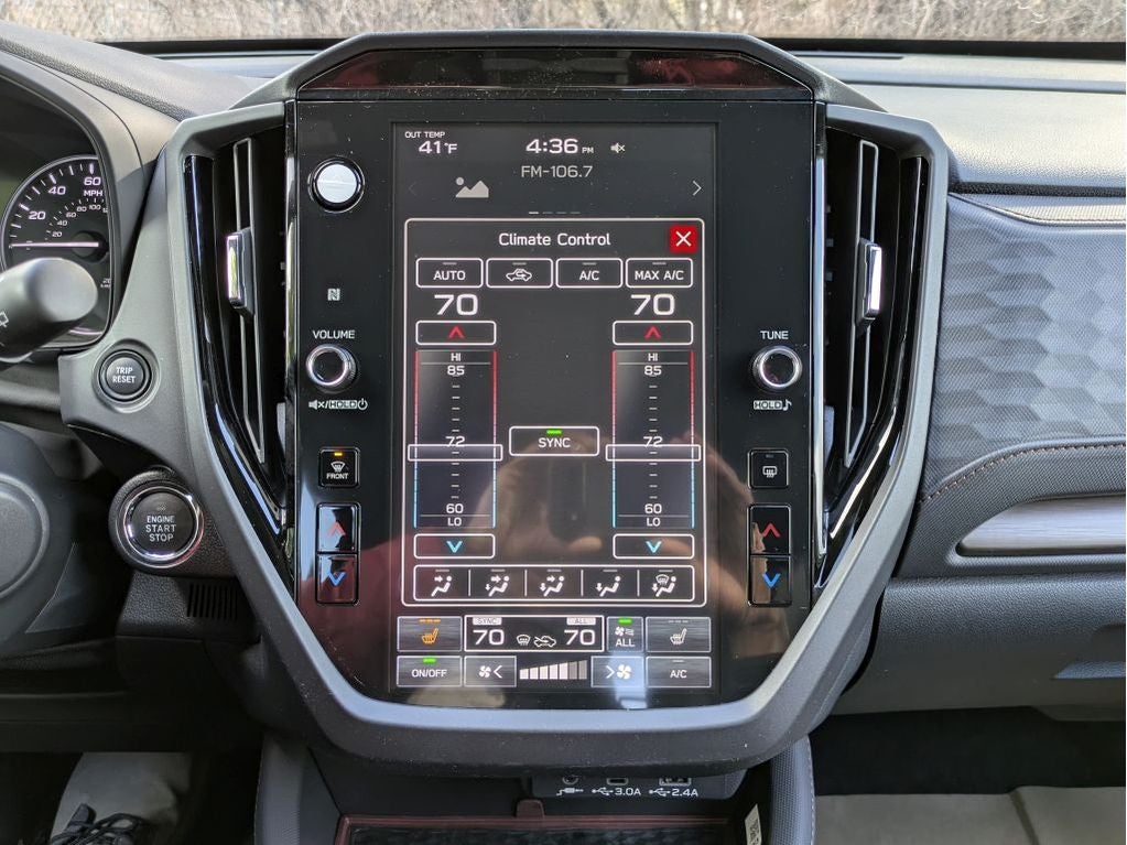 - Radio: Subaru 11.6" Multimedia Plus System -inc: valet mode, integrated center information display, AM/FM stereo HD Radio, multi-touch gesture high resolution display screen, voice activated controls, Bluetooth® audio streaming and hands-free phone connectivity w/SMS text messaging (refer to Subaru.com for cellphone compatibility), iPod control capability, smartphone integration: Android Auto and Apple CarPlay w/full screen view and wireless connection, SiriusXM satellite radio w/360L (free 4-month trial subscription included), USB and Over The Air (OTA) audio system update, steering wheel controls, 6 speakers, 3.5mm auxiliary input jack and roof mounted audio and satellite antenna