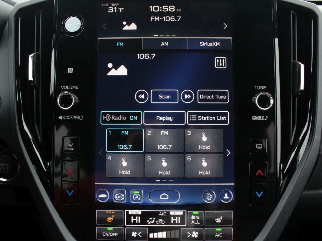 - Radio: Subaru 11.6" Multimedia Plus System -inc: valet mode, integrated center information display, AM/FM stereo HD Radio, multi-touch gesture high resolution display screen, voice activated controls, Bluetooth® audio streaming and hands-free phone connectivity w/SMS text messaging (refer to Subaru.com for cellphone compatibility), iPod control capability, smartphone integration: Android Auto and Apple CarPlay w/full screen view and wireless connection, SiriusXM satellite radio w/360L (free 4-month trial subscription included), USB and Over The Air (OTA) audio system update, steering wheel controls, 6 speakers, 3.5mm auxiliary input jack and roof mounted audio and satellite antenna