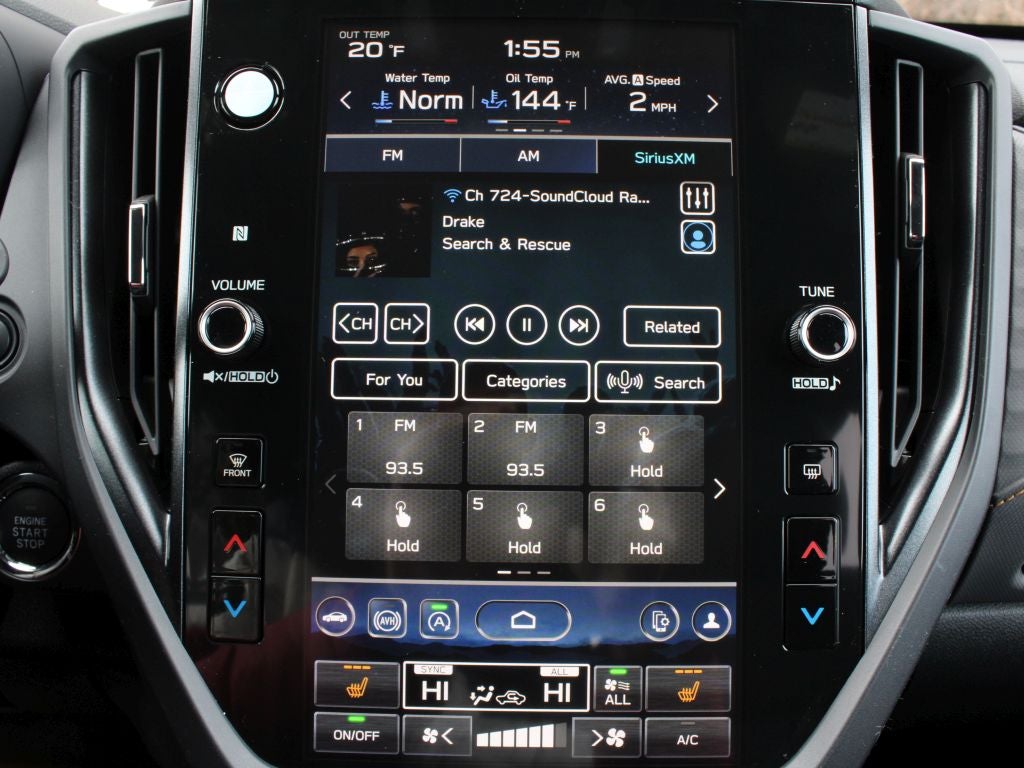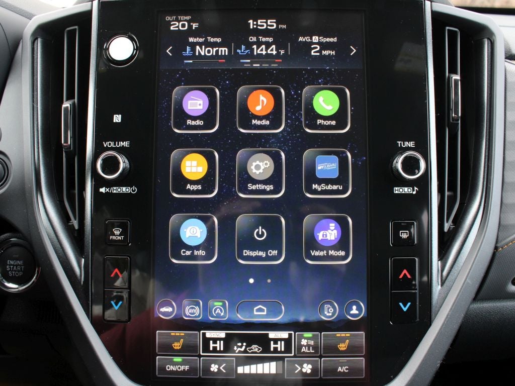 - Radio: Subaru 11.6" Multimedia Plus System -inc: valet mode, integrated center information display, AM/FM stereo HD Radio, multi-touch gesture high resolution display screen, voice activated controls, Bluetooth® audio streaming and hands-free phone connectivity w/SMS text messaging (refer to Subaru.com for cellphone compatibility), iPod control capability, smartphone integration: Android Auto and Apple CarPlay w/full screen view and wireless connection, SiriusXM satellite radio w/360L (free 4-month trial subscription included), USB and Over The Air (OTA) audio system update, steering wheel controls, 6 speakers, 3.5mm auxiliary input jack and roof mounted audio and satellite antenna