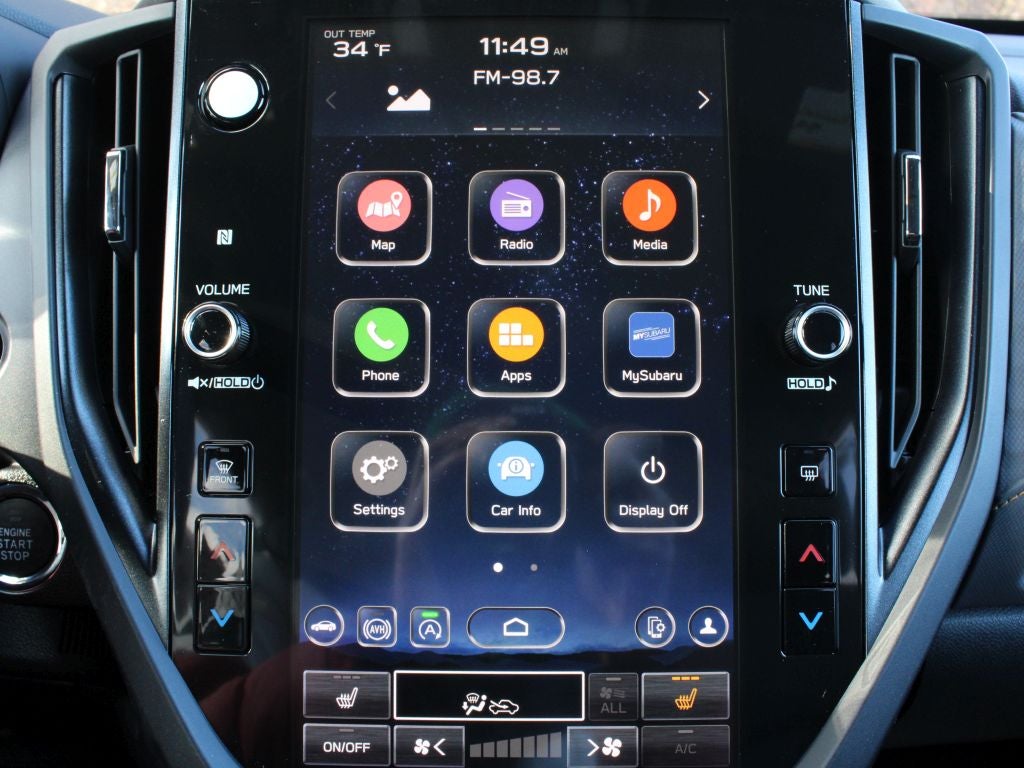- Radio: Subaru 11.6" Multimedia Plus System -inc: valet mode, integrated center information display, AM/FM stereo HD Radio, multi-touch gesture high resolution display screen, voice activated controls, Bluetooth® audio streaming and hands-free phone connectivity w/SMS text messaging (refer to Subaru.com for cellphone compatibility), iPod control capability, smartphone integration: Android Auto and Apple CarPlay w/full screen view and wireless connection, SiriusXM satellite radio w/360L (free 4-month trial subscription included), USB and Over The Air (OTA) audio system update, steering wheel controls, 6 speakers, 3.5mm auxiliary input jack and roof mounted audio and satellite antenna