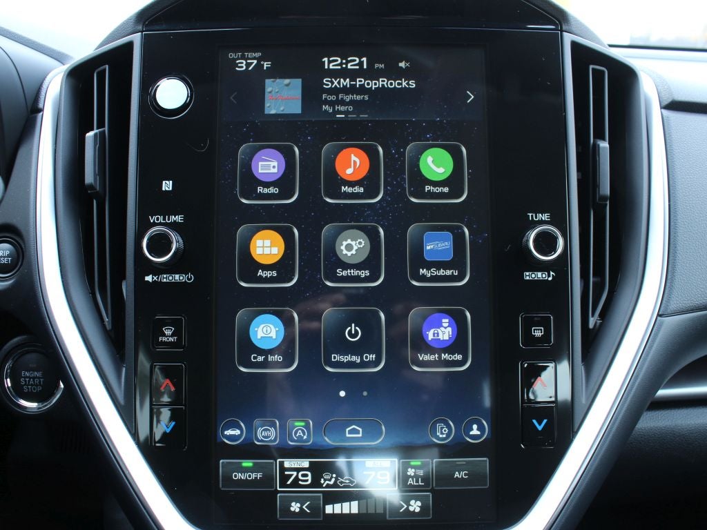 - Radio: Subaru 11.6" Multimedia Plus System -inc: valet mode, AM/FM stereo, HD Radio, multi-touch gesture high resolution display screen, voice activated controls, Bluetooth® audio streaming and hands-free phone connectivity, Bluetooth® hands-free SMS text messaging connectivity, iPod control capability, smartphone integration: wired and wireless Android Auto w/full screen view, wireless Apple CarPlay w/full screen view and wireless connection, USB and Over The Air (OTA) audio system update, audio system and Bluetooth® steering wheel control switches, 6 speakers (2 dash panel tweeter, 2 front door, 2 rear door), illuminated 3.5mm auxiliary input jack, illuminated USB A and C input charge ports, roof mounted satellite and connected services, roof mounted black antenna, connected services operation indicator, SOS emergency assistance (red button) and ehanced roadside assistance (blue i-button)
