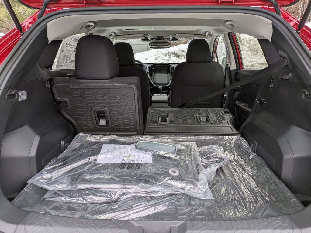 - Radio: Subaru 11.6" Multimedia Plus System -inc: valet mode, AM/FM stereo, HD Radio, multi-touch gesture high resolution display screen, voice activated controls, Bluetooth® audio streaming and hands-free phone connectivity, Bluetooth® hands-free SMS text messaging connectivity, iPod control capability, smartphone integration: wired and wireless Android Auto w/full screen view, wireless Apple CarPlay w/full screen view and wireless connection, USB and Over The Air (OTA) audio system update, audio system and Bluetooth® steering wheel control switches, 6 speakers (2 dash panel tweeter, 2 front door, 2 rear door), illuminated 3.5mm auxiliary input jack, illuminated USB A and C input charge ports, roof mounted satellite and connected services, roof mounted black antenna, connected services operation indicator, SOS emergency assistance (red button) and ehanced roadside assistance (blue i-button)