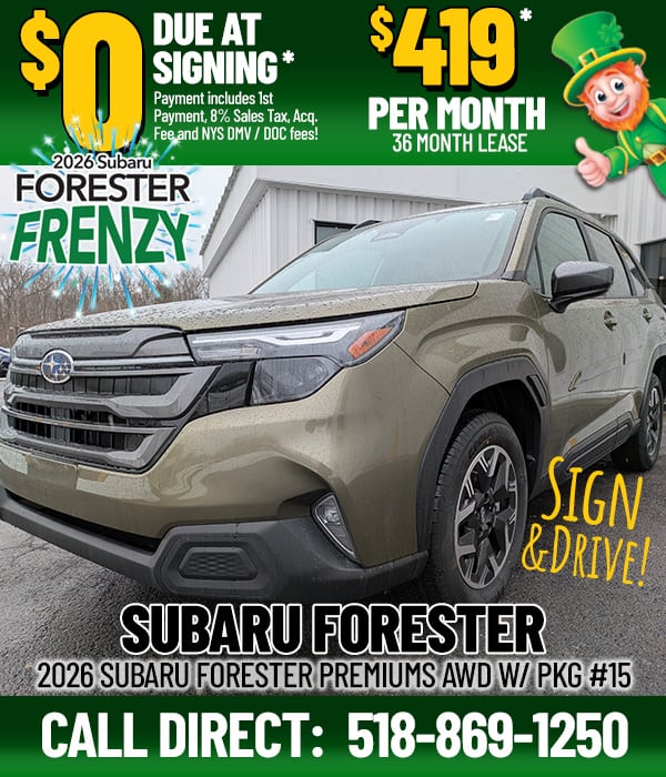 *Payment Includes 1st Payment, 8% Sales Tax, Acq. Fee and NYS DMV/DOC fees! Stk#S26F109, Model Code: TFD-15, MSRP: $37,209. Selling Price: $33,830 (Lease only), Residual value: $23,813.76, $419 per month, 36 months. 10,000 miles per year, 15 cents/mile overage. $0 due at signing. Tier 1 credit, minimum FICO score of 700 to qualify. Photo for illustration purposes only. Subject to availability. Expires 3/31/26.