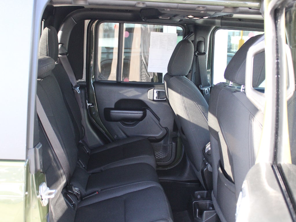 Cold Weather Group: Remote Start System; Heated Front Seats; Heated Steering Wheel. Convenience Group: Remote Start System; Universal Garage Door Opener. Technology Group: Google Android Auto; USB Host Flip; Cluster 7.0" TFT Color Display; Integrated Center Stack Radio; 7.0" Touch Screen Display; Air Conditioning with Auto Temp Control; Integrated Voice Command with Bluetooth®; Uconnect 4 Radio with 7" Display; Apple CarPlay. Auxiliary Switch Group: 700 Amp Maintenance Free Battery; Auxiliary Switches; 240 Amp Alternator. Trailer Tow Package: Heavy Duty Engine Cooling; Trailer Hitch Zoom; Class IV Hitch Receiver; 240 Amp Alternator. Quick Order Package 24W Willys: Speed Sensitive Power Locks; Protection Sill Rails; Leather Wrapped Steering Wheel; 4-Wheel Drive Decal; Black Grille; MOPAR All-Weather Floor Mats; LT255/75R17C OWL On/off Road Tires; 2-Piece Body Color Fender Flares; Front 1-Touch Down Power Windows; Anti-Spin Differential Rear Axle; Front Heavy Duty Red Accent Shock Absorbers; Security Alarm; Willys; Mold in Color Bumper with Gloss Black; Automatic Headlamps; 17" X 7.5" Black Aluminum Wheels with Gray Pad; Deep Tint Sunscreen Windows; Black Trail Rated Badge; Willys Hood Decal; Rear Heavy Duty Red Accent Shock Absorbers; 97 Mph Maximum Speed Calibration; Power Heated Mirrors; Daytime Running Lamp System; Power Tailgate Lock; Bridgestone Brand Tires; Remote Keyless Entry; Sun Visors with Illuminated Vanity Mirrors. Black 3-Piece Hard Top. MOPAR Hardtop Headliner. SiriusXM Satellite Radio. Sarge Green Clearcoat. **Equipment listed is based on original vehicle build and subject to change. Please confirm the accuracy of the included equipment by calling the dealer prior to purchase.**