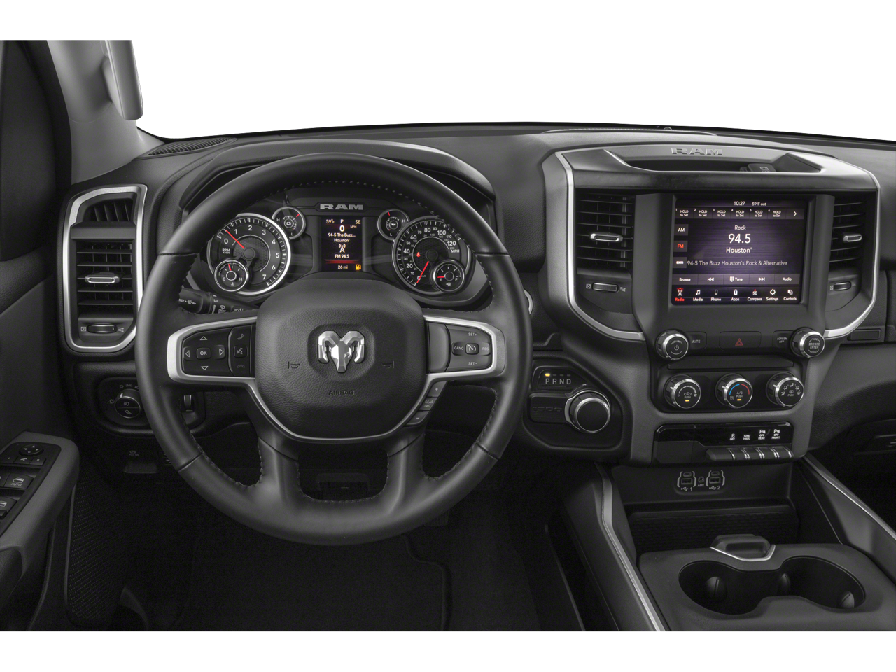 Quick Order Package 27Z Big Horn: Big Horn Badge. Big Horn Level 2 Equipment Group: SiriusXM Radio Service; Uconnect 4 Radio with 8.4" Display; Rear Window Defroster; ParkSense Front/rear Park Assist with Stop; Rear View Auto Dim Mirror; Power Adjustable Pedals; For More Info. Call 800-643-2112; Rear Power Sliding Window; Rear Dome with On/off Switch Lamp; Glove Box Lamp; Power 4-Way Driver Lumbar Adjust; 115V Auxiliary Rear Power Outlet; Media Hub with 2 Charge Only USBs; Power 8-Way Driver Seat; Auto Dim Exterior Driver Mirror; Heated Front Seats; Heated Steering Wheel; Foam Bottle Insert (door Trim Panel); Class IV Receiver Hitch; Security Alarm; Black Premium Power Mirrors; Big Horn Instrument Panel Badge; Remote Start System; SiriusXM Satellite Radio; Exterior Mirrors with Supplemental Signals; Exterior Mirrors Courtesy Lamps; Air Conditioning ATC with Dual Zone Control; 115V Auxiliary Power Outlet; Cluster 7.0" TFT Color Display; Universal Garage Door Opener; Power-Folding Mirrors; 2nd Row in Floor Storage Bins; Sun Visors with Illuminated Vanity Mirrors. Premium Lighting Group: Front LED Fog Lamps; LED Reflector Headlamps; LED Taillamps. Quick Order Package 23Z Big Horn: Big Horn Badge. 20" X 9" Aluminum Chrome Clad Wheels. Deluxe Cloth Bucket Seats. ParkSense Front/rear Park Assist with Stop. Trailer Brake Control. Remote Start System. Rear Wheelhouse Liners. MOPAR Front and Rear Rubber Floor Mats. 115V Auxiliary Power Outlet. Diamond Black Crystal PC. **Equipment listed is based on original vehicle build and subject to change. Please confirm the accuracy of the included equipment by calling the dealer prior to purchase.**