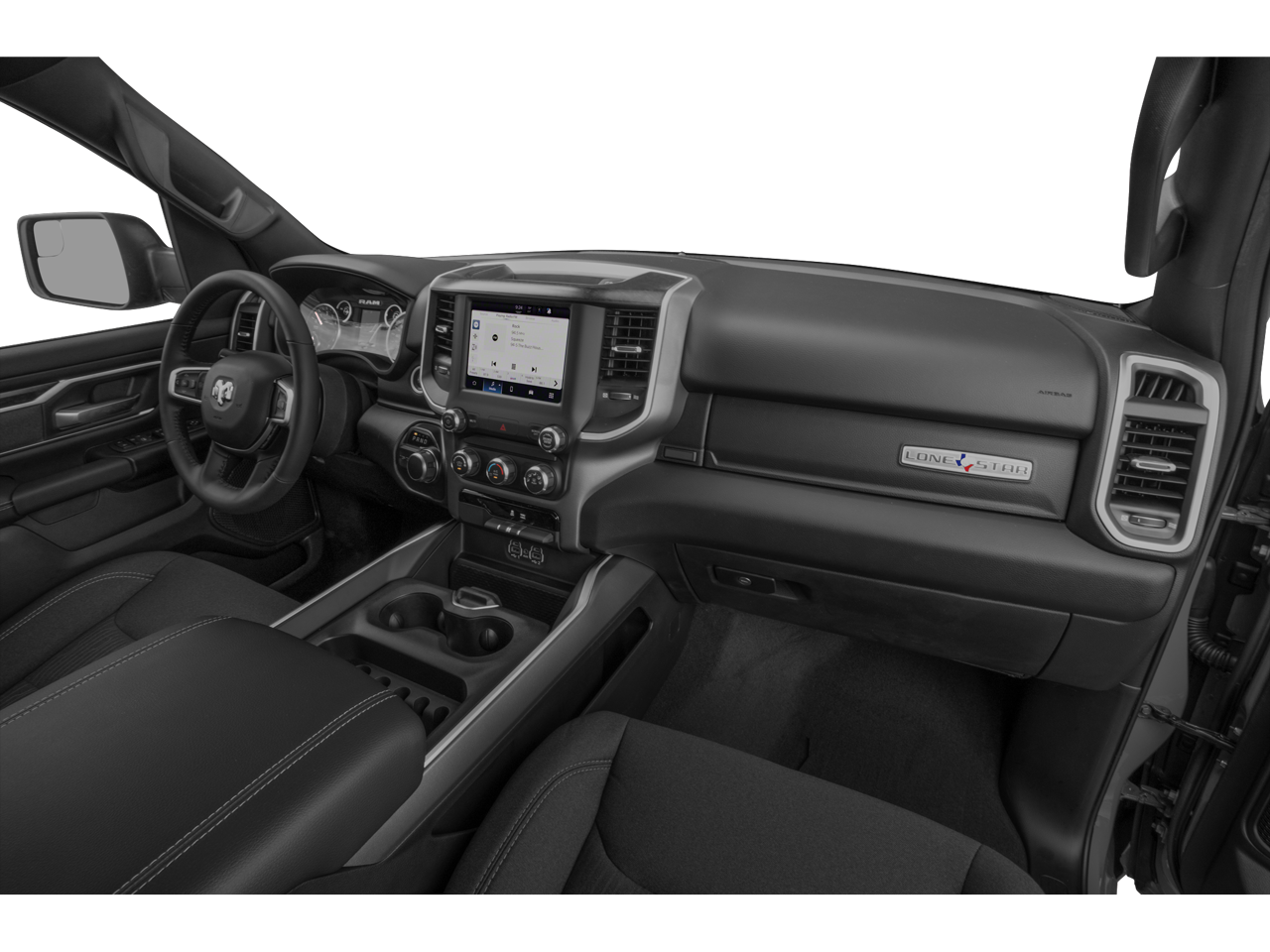 Quick Order Package 25Z Big Horn: Big Horn Badge. Big Horn Level 2 Equipment Group: Google Android Auto; SiriusXM Radio Service; Bluetooth® Handsfree Phone and Audio; USB Host Flip; Rear Window Defroster; For Details. Visit DriveUconnect.com; Integrated Center Stack Radio; ParkSense Front/rear Park Assist with Stop; Rear View Auto Dim Mirror; Power Adjustable Pedals; Rear Power Sliding Window; Rear Dome with On/off Switch Lamp; Connectivity - US/Canada; Glove Box Lamp; 4G LTE Wi-Fi Hot Spot; 115V Auxiliary Rear Power Outlet; GPS Antenna Input; Media Hub with 2 Charge Only USBs; Exterior Mirrors with Heating Element; Power 8-Way Driver Seat; Auto Dim Exterior Driver Mirror; Global Telematics Box Module; Heated Front Seats; Uconnect 5 W Radio with 8.4" Display; Heated Steering Wheel; 8.4" Touchscreen Display; Black Exterior Mirrors; Class IV Receiver Hitch; Security Alarm; Black Premium Power Mirrors; Apple CarPlay; Big Horn Instrument Panel Badge; Remote Start System; SiriusXM Satellite Radio; Exterior Mirrors with Supplemental Signals; Exterior Mirrors Courtesy Lamps; Air Conditioning ATC with Dual Zone Control; 115V Auxiliary Power Outlet; Cluster 7.0" TFT Color Display; Universal Garage Door Opener; Power-Folding Mirrors; 2nd Row in Floor Storage Bins; Convex Wide-Angle Mirror Insert; Sun Visors with Illuminated Vanity Mirrors; Power 2-Way Driver Lumbar Adjust. Quick Order Package 23Z Big Horn: Big Horn Badge. 20" X 9" Aluminum Chrome Clad Wheels. Deluxe Cloth Bucket Seats. ParkSense Front/rear Park Assist with Stop. Trailer Brake Control. 115V Auxiliary Power Outlet. Remote Start System. Rear Wheelhouse Liners. Diamond Black Crystal PC. 3.92 Rear Axle Ratio. Cluster 7.0" TFT Color Display. **Equipment listed is based on original vehicle build and subject to change. Please confirm the accuracy of the included equipment by calling the dealer prior to purchase.**