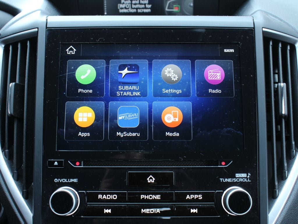 - Radio: Subaru STARLINK 8.0" Multimedia Plus System -inc: AM/FM stereo, HD Radio, single disc CD player w/MP3/WMA/CRR/RW file capability, multi-touch gesture high resolution display screen, voice activated controls, Bluetooth audio streaming and hands-free phone connectivity, Bluetooth hands-free SMS text messaging connectivity, Near Field Communication (NFC), iPod control capability, rear-vision camera display, SiriusXM All Access radio (4 months free trial/subscription required after), SiriusXM Travel Link (4 months free trial/subscription required after), smartphone integration: AHA, Android Auto, Apple CarPlay, Pandora, STARLINK cloud applications, 6 speakers, 3.5mm auxiliary input jack, dual USB A input charge ports, dual USB input charge ports, roof mounted antenna and audio/satellite connected services