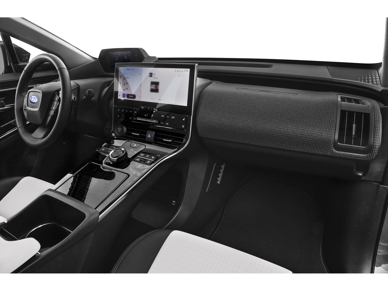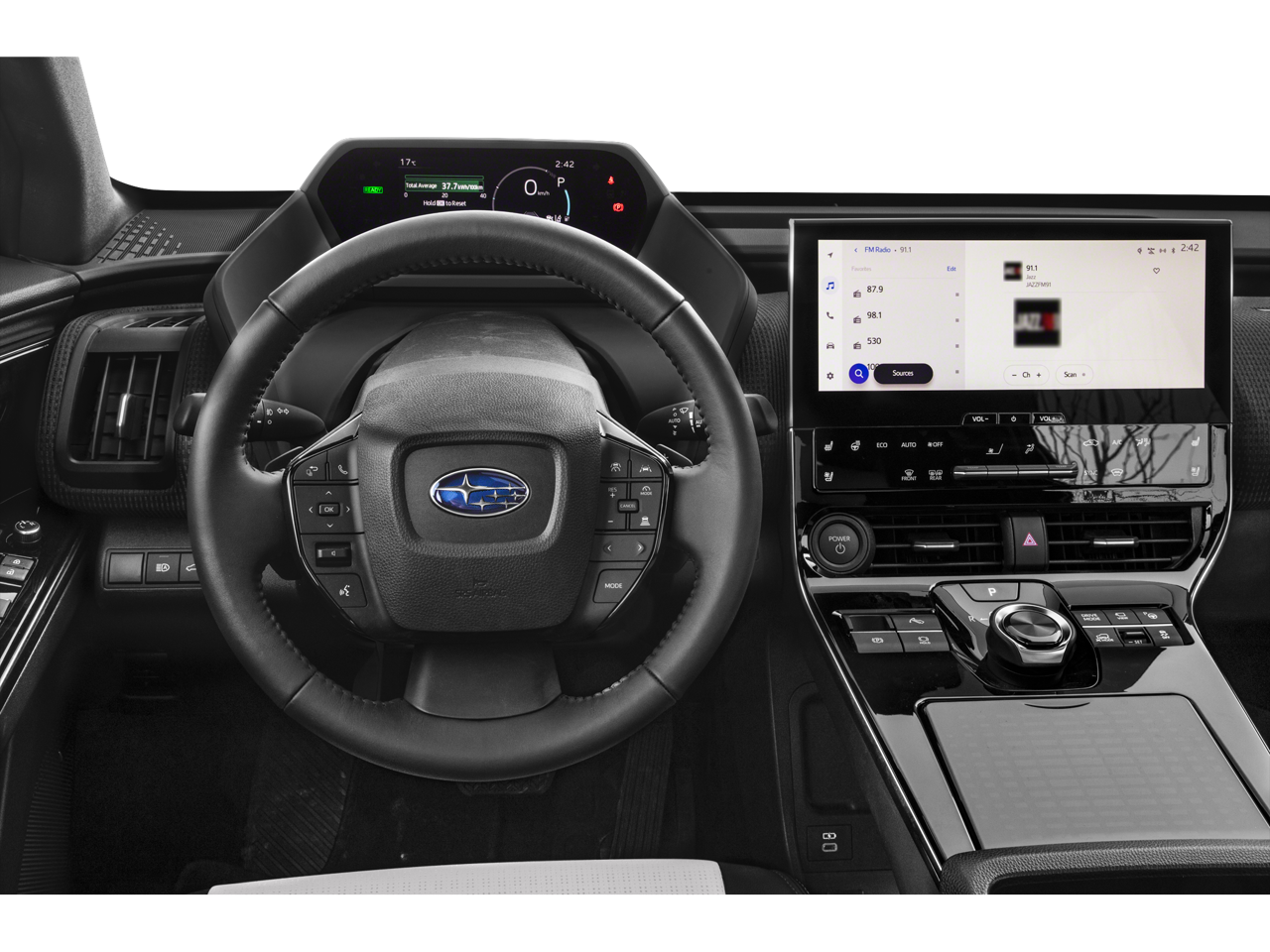 - Radio: Subaru Solterra Connect 12.3" Multimedia System -inc: navigation system (navigation subscription required), AM/FM HD radio, Bluetooth audio streaming and hands-free phone connectivity w/SMS text messaging (refer to subaru.com for cell phone compatibility), SiriusXM all access radio (4 months free trial included/subscription required after), Android Auto, Carplay and harman/kardon 11 speaker system w/576 watt equivalent maximum output amplifier, multi-touch gesture high resolution display screen, Near Field Communication (NFC), Subaru Solterra Connect intelligent assistant includes dual-zone voice control system w/driver and passenger headliner microphone, steering wheel talk switch, cloud navigation operation, integrated steering operation (subscription required), USB/Over The Air (OTA) audio system updates, USB/Map Over The Air (MOTA) navigation system updates, steering wheel control switches for audio system and Bluetooth, USB A input/charge port and illuminated dual USB C input/charge port