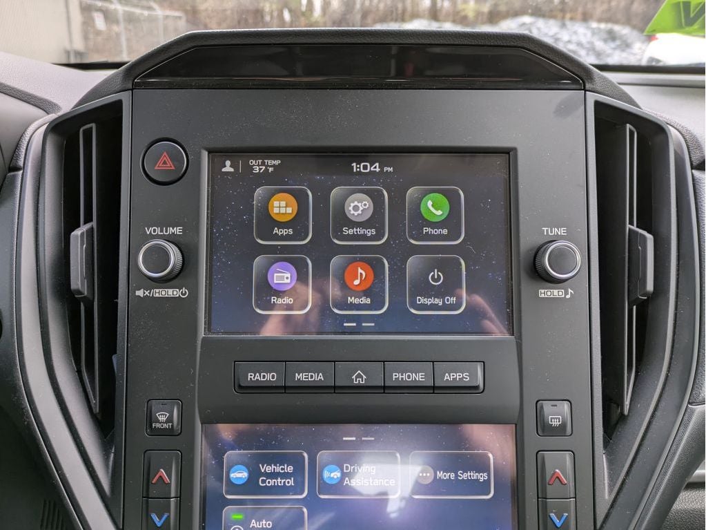 - Radio: Subaru Dual 7" Multimedia System -inc: AM/FM stereo, HD radio, multi-touch gesture high resolution display screen, voice activated controls, Bluetooth audio streaming and hands-free phone connectivity, Bluetooth hands-free SMS text messaging connectivity, iPod control capability, SiriusXM (4 months free trial/subscription required after), smartphone integration: wired Android Auto, wired Apple CarPlay, USB audio system update, audio system and Buletooth steering wheel control switches, 4 speakers, illuminated 3.5mm auxiliary input jack, illuminated USB A input charge port and roof mounted black antenna